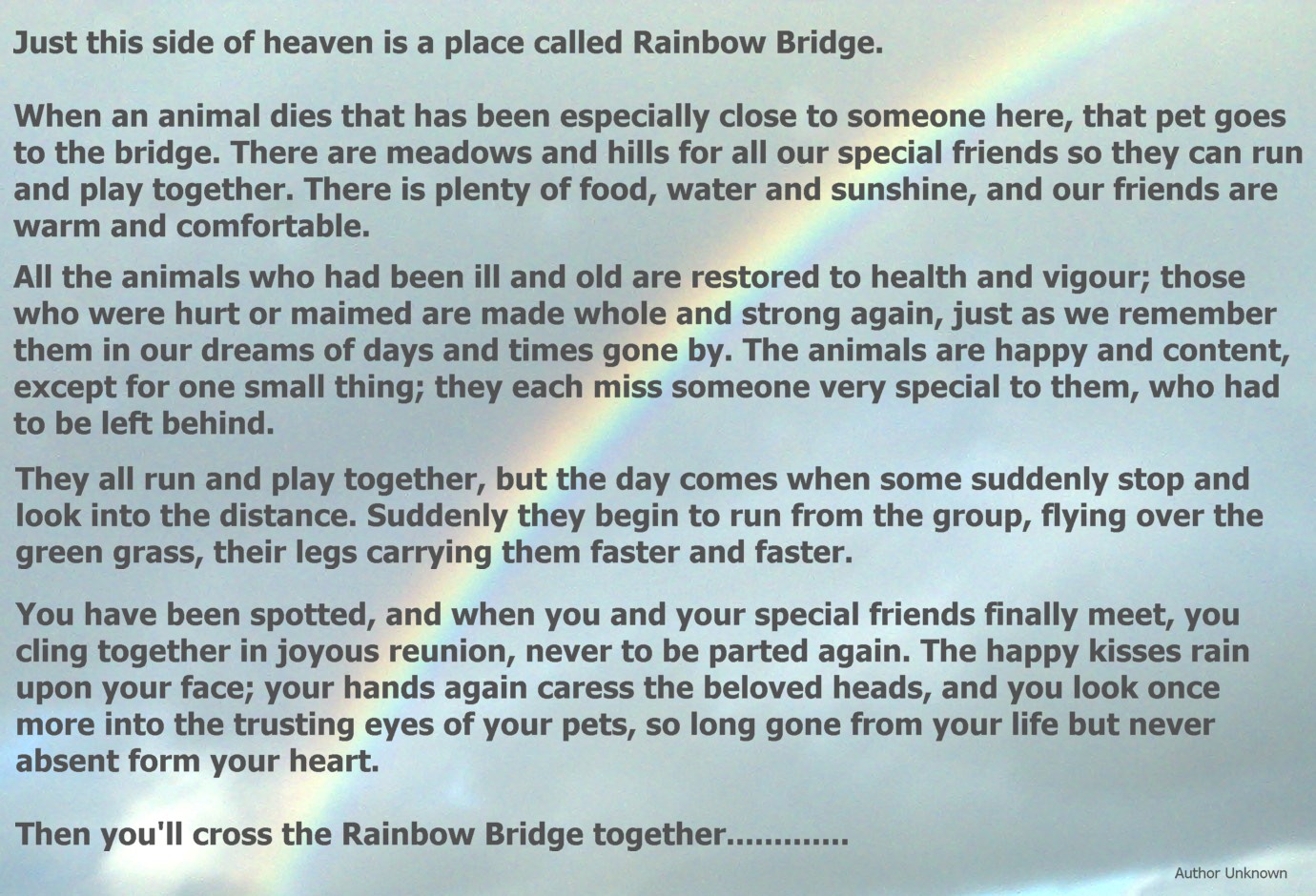 I Ve Had To Read This Poem Too Many Times In My Own Experience Of Losing A Pet This Will Be The Hardest Part Of The Job Sendi Rainbow Poem Poems Losing